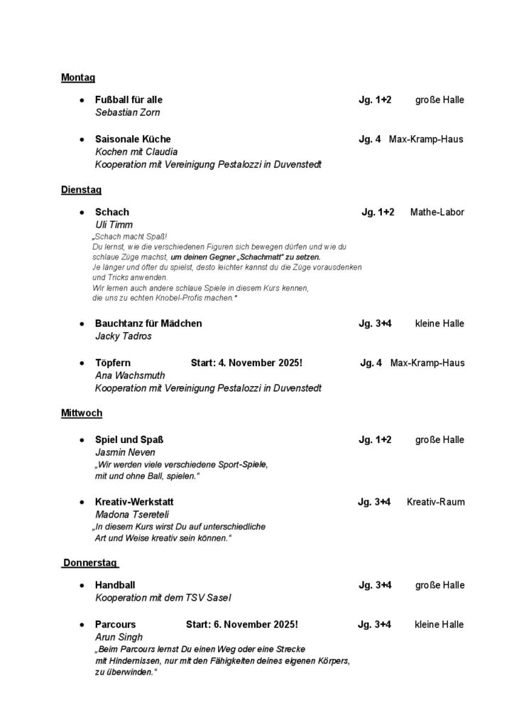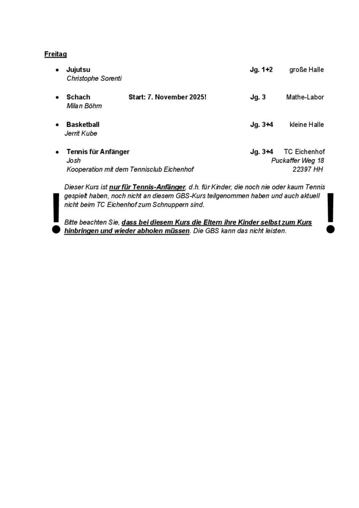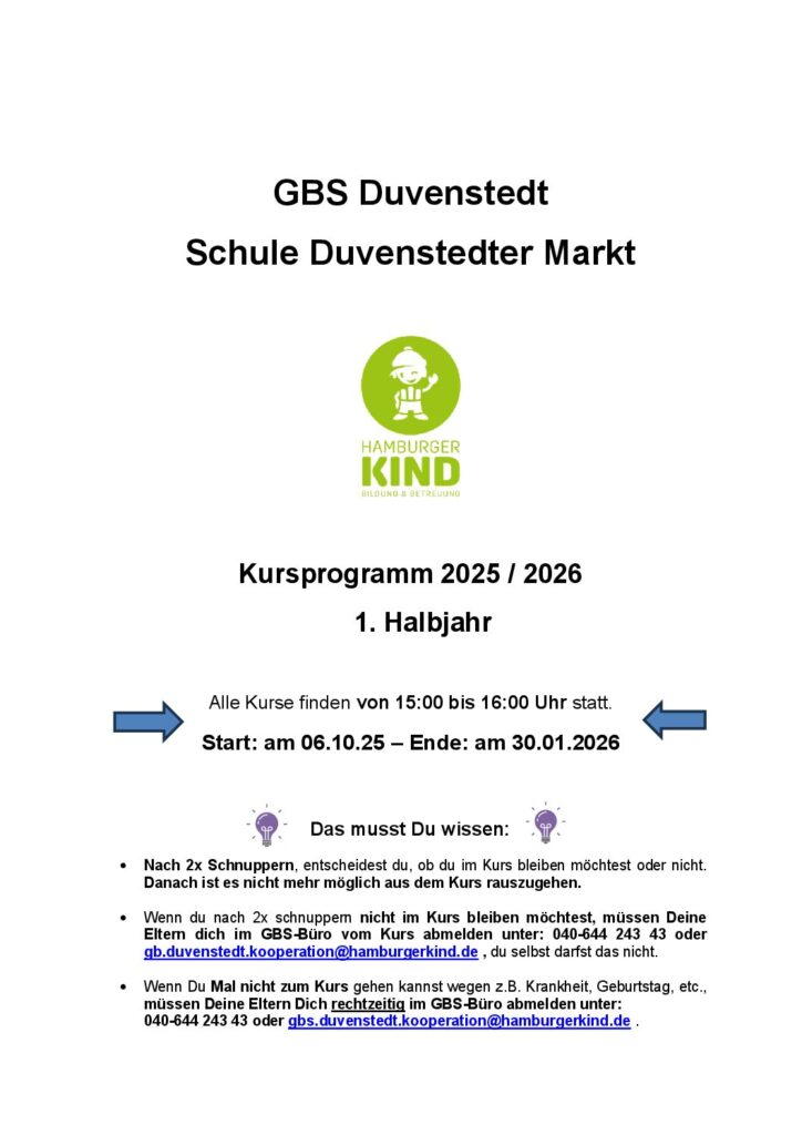 - Kurswahl 2-3 Wochen nach den Sommerferien bzw. vor Beginn des zweiten Halbjahres